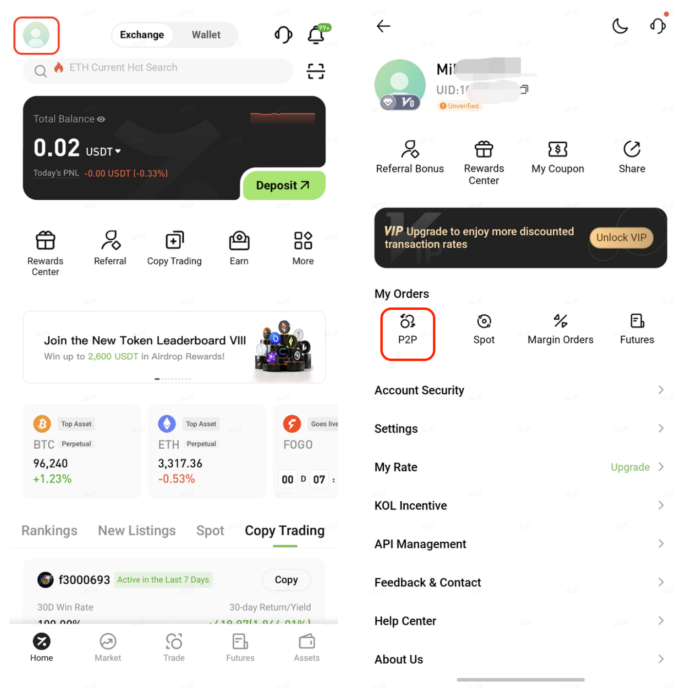 Note: To start trading, you need to transfer funds from your P2P Account to the appropriate trading account (e.g., Spot, Futures, etc.).